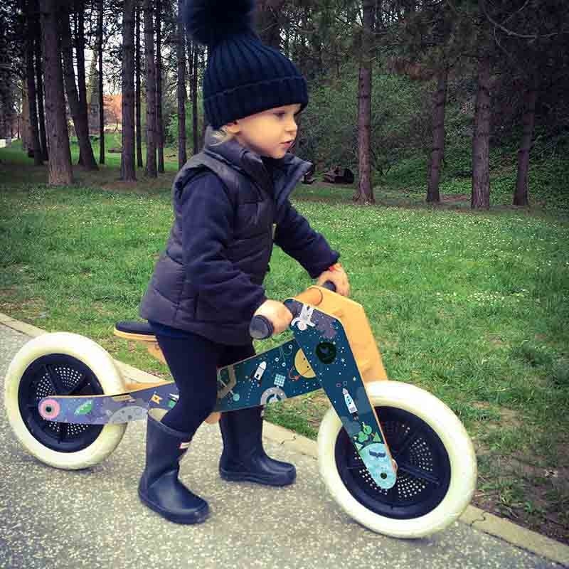 La Wishbone Bike Trike es la elección más correcta para l@s más pequeñ@s. En su modo triciclo podremos empezar a partir del primer año. Ya habrá tiempo de convertirla en bici de aprendizaje, quizás a partir de los dos años o dos años y medio. Sólo bastará que quitemos la tercera rueda y ¡voilá! tendremos una súper bici para aprender el equilibrio y obtener la soltura necesaria. ¿Que hemos crecido? No pasa nada, invertimos el cuadro de la bici y aumentaremos la altura (sin contar los tres niveles de altura que nos regala su sillín). Madera FSC, diseño y ecología para niños y niñas intrépidos a partir de 1 año y hasta los 5!. G¿Fabricado en Nueva Zelanda.