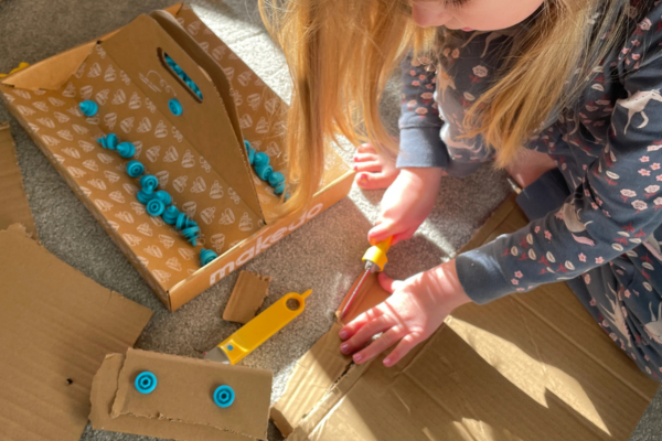 Una de las tendencias de búsqueda en auge es el "juego sostenible", pero con Makedo vamos un paso más allá: entramos en la economía circular aplicada al juego. En lugar de consumir un juguete con un principio y un final cerrados o demasiado estructurados, lxs niñxs utilizan herramientas seguras para dar una segunda vida al cartón.