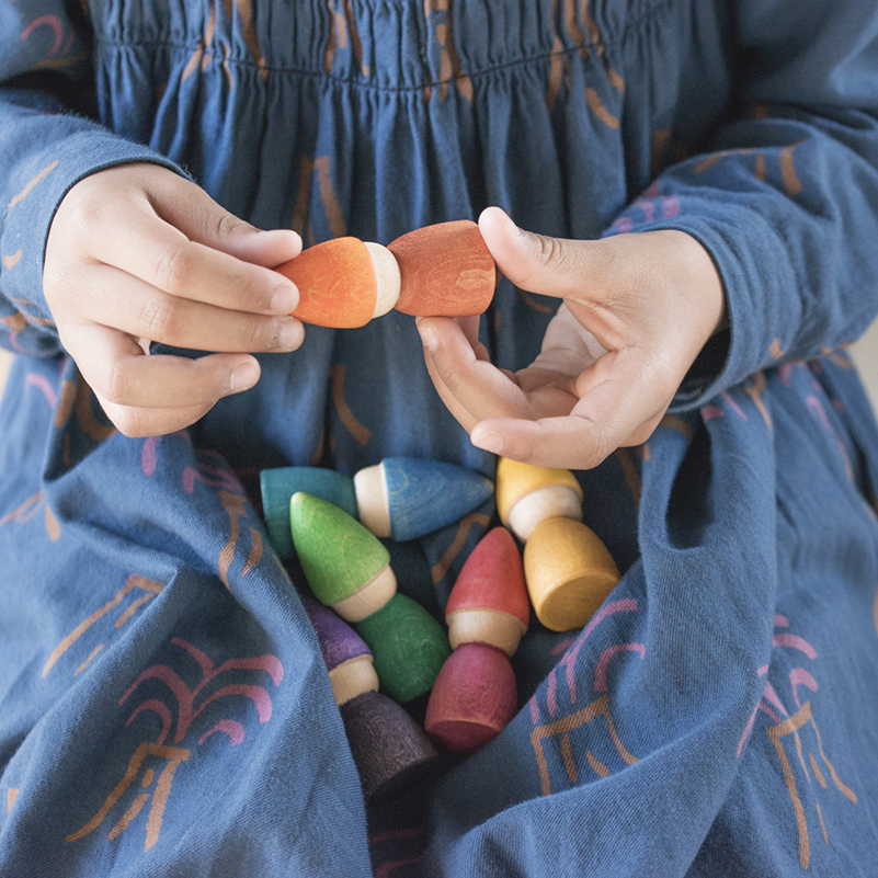 A partir de los 18 meses y hasta los 24 podemos optar por aquellos materiales que sirven para explorar su entorno, pues han ganado autonomía, y también los que les permiten desarrollar su equilibrio. No olvidemos que en esta etapa están comenzando a hablar y comprender algunos conceptos más sofisticados, de manera que jugar con asociaciones de colores y formas es una gran alternativa. En algunos casos, les peques a partir de 2 años tienen un primer acercamiento a los juegos de imitación, por lo queanimales y figuras humanas como los Nins Magos Arcoíris de Grapat serán muy útiles e interesantes en este momento.