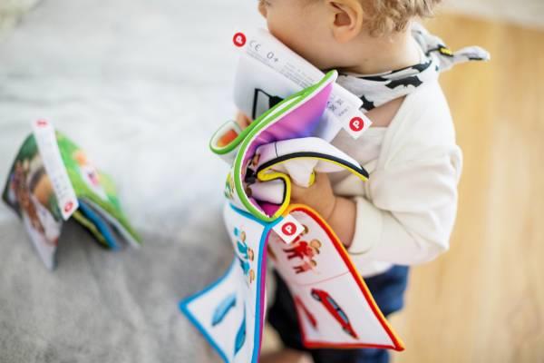 - Opta por libros sensoriales con diferentes texturas para que el bebé explore con sus manos.