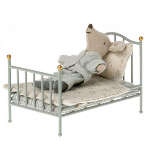 camita con aire romántico para los ratones y conejos más adorables del planeta. Su tamaño My lo hace perfecto para ratones y conejitos pequeños (bebés y little Brother y Little Sister) de la marca Maileg. Dormir y soñar con las estrellas será sencillo en esta camita de metal esmaltado en menta y colchón y manta de algodón.