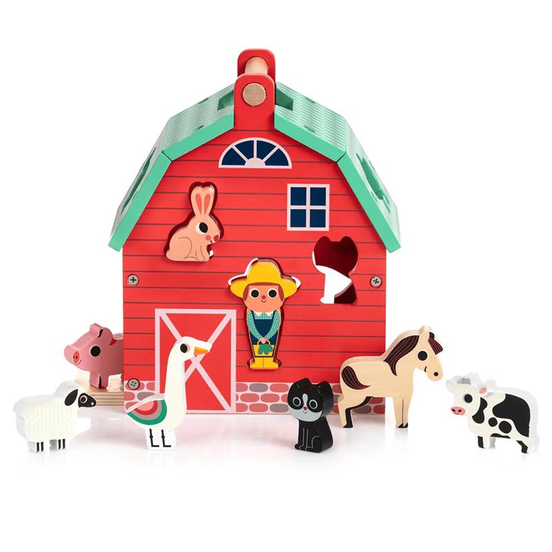 Además de ser un juego de motricidad fina y coordinación ojo-mano, su estética encantadora y colorida, fruto de la ilustradora sueca Ingela P. Arrhenius, convierte esta granja en un objeto lúdico y decorativo a la vez.