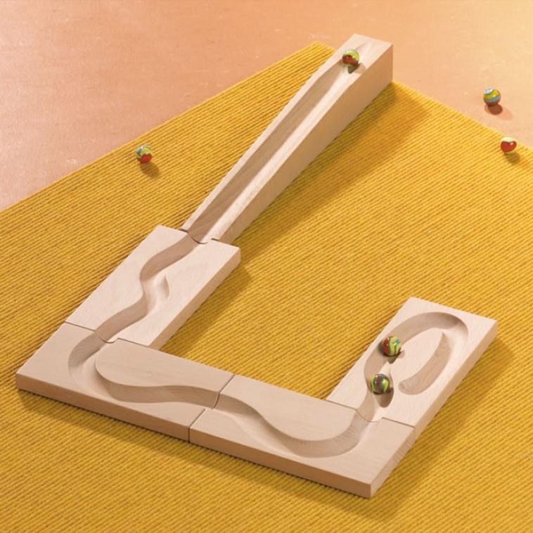 Un accesorio perfecto para evitar que tus canicas terminen desperdigadas y corriendo por el suelo. Este set de Haba consiste una serie de raíles para disminuir la velocidad con la que se acercan las canicas al final del recorrido, gracias a sus curvas ralentizantes y la ni pendiente. Un conjunto de piezas único, de calidad extraordinaria: sólo madera de abedul de bosques sostenibles. El set de Vías de Acabado es una función necesaria para terminar felizmente cualquier construcción que hayas diseñado en tu Kugelbahn. Calidad Haba. Apto a partir de 3 años.