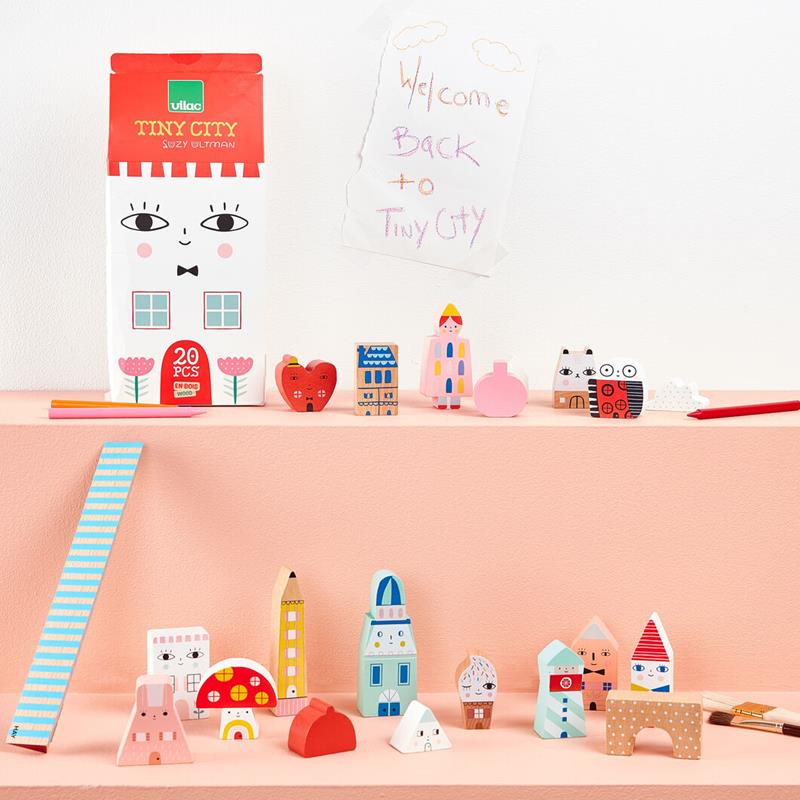 Suzy Ultman es una reconocida ilustradora con un sello que la hace única. Un mundo de fantasía que ahora decorar estas 20 piezas de madera para construir ciudades de encanto. Apto a partir de 2 años, estas piezas desarrollarán la imaginación, la creatividad y permitirá la creación de mundos repletos de fantasía y dulzura. Colores, formas sencillas y diseños sugerentes para alegría de los peques y de los no tan peques. Calidad Vilac.