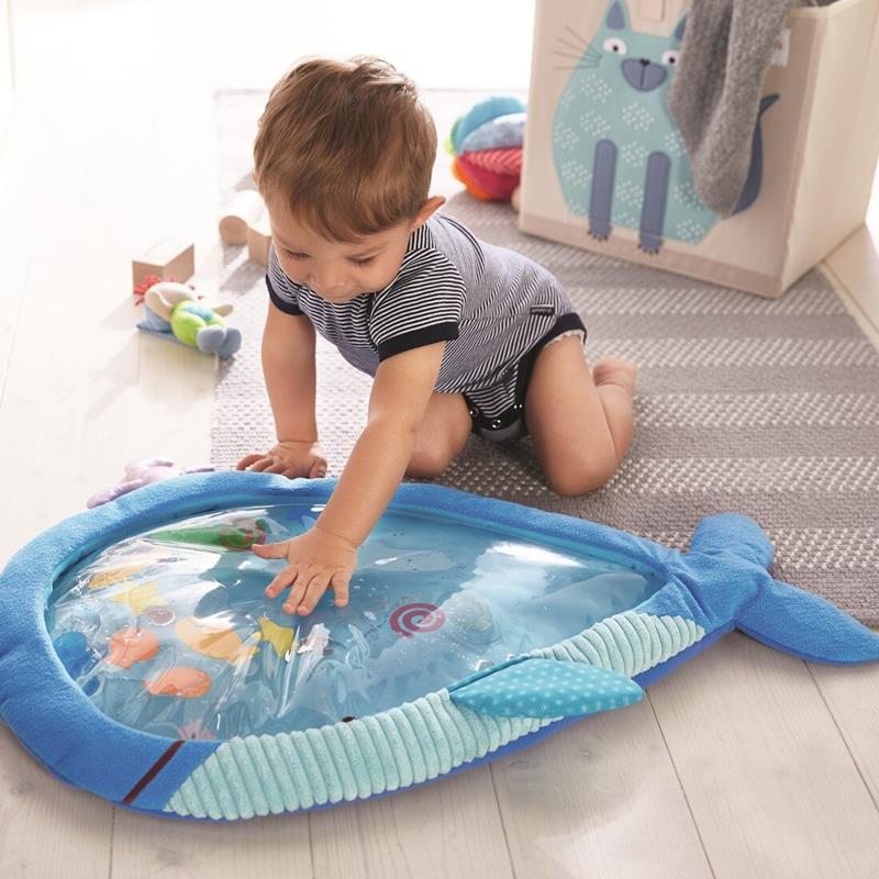 Esta esterilla acuática es una experiencia para todos los bebés que ya juegan boca abajo o sentados. Déjale observar y fascinarse con los motivos y moradores del mundo submarino. En este tapiz de actividades hay muchos elementos ópticos, táctiles y acústicos para explorar lúdicamente. Los bebés pueden mover todos los elementos de un lado a otro fácilmente con sus manos al pisar sobre la superficie que esté rellena de agua. Mira cómo les divierte, mientras refuerza la musculatura y fomenta la motricidad en la posición boca abajo. Esta esterilla acuática posee una suave envoltura textil que hace que sea agradable y cómodo para los niños. Por otra parte, ofrece la posibilidad de utilizar temperaturas diferentes del agua cada vez y estimular así el tacto y el desarrollo sensorial. Tamaño del tapiz desplegado 65 x 55 cm. Apto a partir de 6 meses.