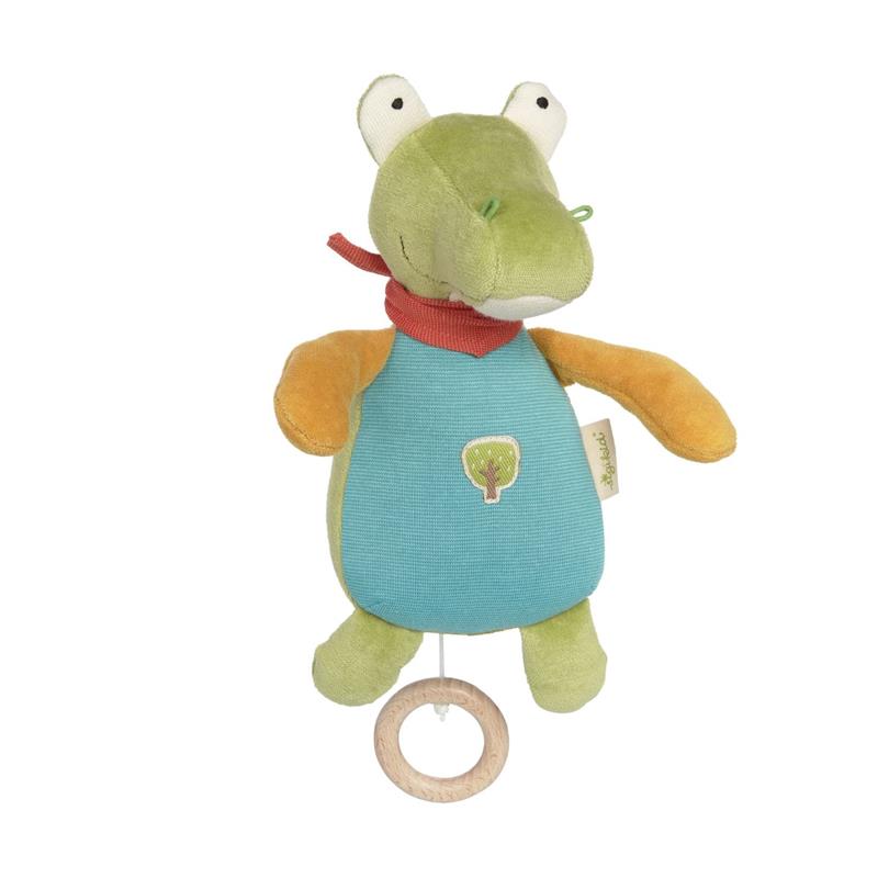 ¡Pide un deseo! ¡Concedido! Te traemos un muñeco musical de algodón orgánico para relajar a tu bebé. Y es que este encantador Cocodrilo de peluche orgánico, hará sonar su suave melodía para calmar a tu bebé y que se duerma relajado y feliz. El mullido y suave juguete musical que pertenece a la colección GREEN de Sigikid está fabricado en algodón orgánico por fuera y su relleno es de pura lana virgen. Gracias a su cremallera de seguridad, podrás retirar el mecanismo musical fácilmente y lavar el muñeco en la máquina cuando lo requiera. La música de su caja pertenece a una gran selección de canciones de cuna y melodías famosas. Apto desde el nacimiento.