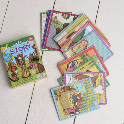 36 preciosas cartas ilustradas para crear historias. Aldea Animal de Eeboo, es una propuesta imaginativa, divertida y creativa para convertirte en creador@ de cuentos. La dinámica es muy sencilla y puede ser una oportunidad para trabajar cooperativamente en casa o dentro del aula. Saca 5 tarjetas al azar, ponlas boca arriba sobre la mesa y ¡comienza a contar!. Enlaza las imágenes en una sola y consistente historia. Desarrolla el lenguaje, la expresión verbal y el vocabulario además de favorecer el desarrollo de la imaginación y la fantasía. Apto a partir de 3 años. Se puede jugar en cualquier idioma.