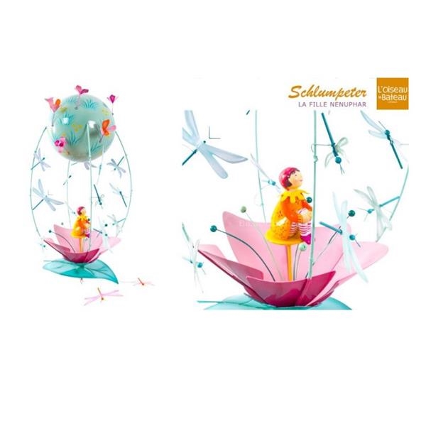 Inspirados en las Novelas de Julio Verne, Les Schlumpeters toman el cielo y transportan a tus peques a un mundo onírico y entrañable...Barcos, flores, alfombras mágicas, funambulistas, pescadores de estrellas o esta delicada niña que navega sobre un Nenúfar, nos llegan de la mano de estas exquisitas creaciones en metal esmaltado. Completamente pintados a mano evocan un mundo mágico y reservado a los soñadores...