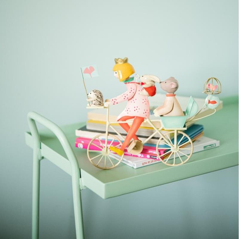 Un delicado y precioso móvil fabricado en metal pintado a mano para decorar una habitación o bien para uso exterior, en una terraza o un jardín. Les Triplé son un detalle original y delicado para una ocasión especial. La bicicleta, con su aire retro dará un toque romántico a cualquier rincón. Fabricado a mano en Francia. No es un juguete.
