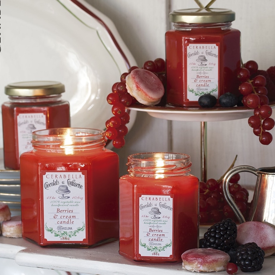 Vela de cera vegetal perfumada en tarro de confitura clásico. Colección inspirada en los aromas de la repostería más exquisita.