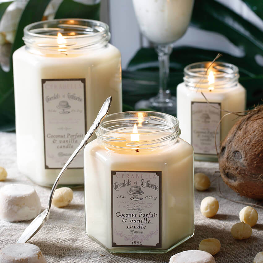 Vela de cera vegetal perfumada en tarro de confitura clásico. Colección inspirada en los aromas de la repostería más exquisita.