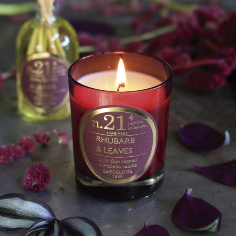 A diferencia de otras velas del mercado, la vela perfumada n.21 Rhubarb & Leaves está elaborada a mano por expertos artesanos en España a partir de ceras vegetales naturales biodegradables y aromatizada con aceites esenciales de gran pureza, garantizando un quemado ecológico ¿Cuánto dura esta vela? Aproximadamente unas 50 horas de combustión. Gracias a estar elaborada con sumo cariño y con ingredientes naturales de alta calidad y con una mecha trenzada en algodón natural, permite que la combustión sea más duradera, limpia y uniforme.