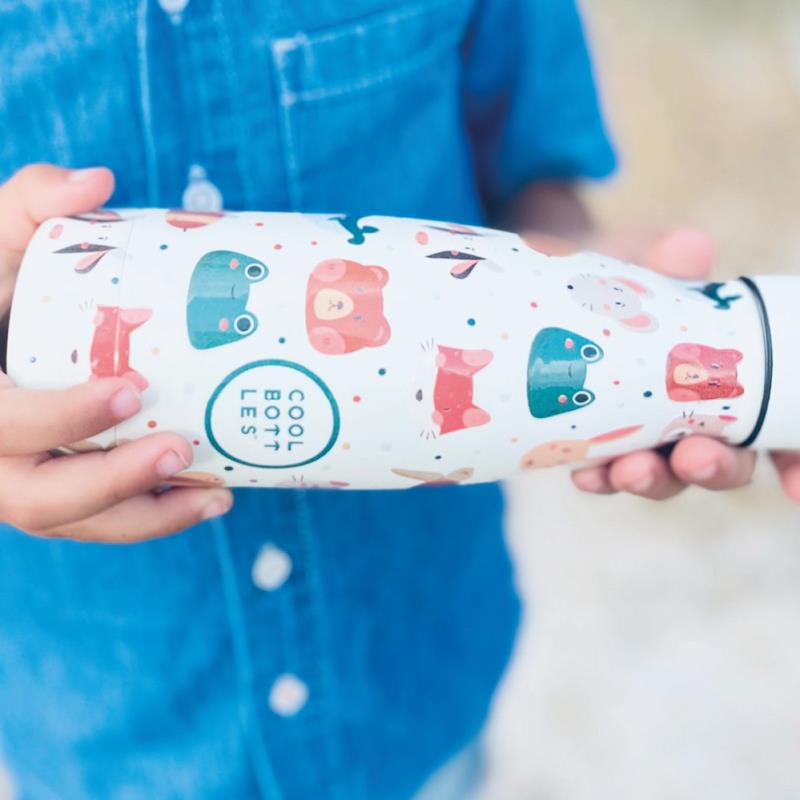 ¡Vamos a hacer un juego! ¿Serías capaz de contar todos los animales que hay dibujados en esta botella? Son muchos verdad… y es que no podíamos decidirnos por uno solo… Nos gustan tanto que hemos querido ponerlos todos… ¿Y tú? ¿Cuál es el que más te gusta? Esta botella con ilustraciones en relieve y recubrimiento polvo es ligera y un potente conservador térmico. Capacidad 260ml. Altura 19.5cm – Diámetro 6,5cm – Peso 205 gr. Incluye 2 tapas (con y sin boquilla), cepillo para limpieza y pegatinas para personalizar tu botella.