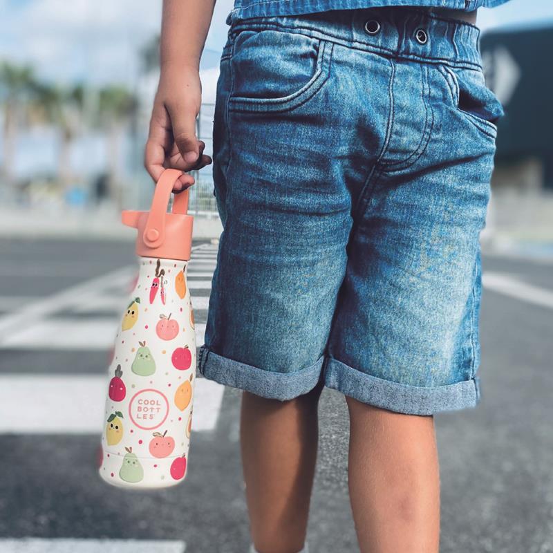 ¡Vamos a hacer un juego! ¿Serías capaz de nombrar todas las frutas que hay dibujadas en esta botella? Una pista: Son deliciosas todas!… y es que a esta ensalada de frutas sólo le faltas tú… Nos gustan tanto que hemos querido ponerlas todas… ¿Y tú? ¿Cuál es la que más te gusta? Esta botella con ilustraciones en relieve y recubrimiento polvo es ligera y un potente conservador térmico. Capacidad 260ml. Altura 19.5cm – Diámetro 6,5cm – Peso 205 gr. Incluye 2 tapas (con y sin boquilla), cepillo para limpieza y pegatinas para personalizar tu botella.