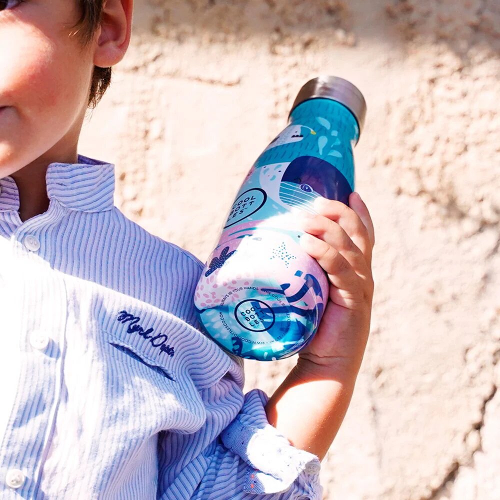 Con Sea World zarparemos desde el mediterráneo acompañados de ballenas, estrellitas, peces espada, pulpos piratas… descubriendo todo el mundo marino. ¡Imposible no unirse!. Esta botella con ilustraciones en relieve y recubrimiento polvo es ligera y un potente conservador térmico. Capacidad 260ml. Altura 19.5cm – Diámetro 6,5cm – Peso 205 gr. Incluye 2 tapas (con y sin boquilla), cepillo para limpieza y pegatinas para personalizar tu botella.