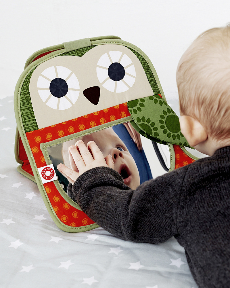 Franck & Fischerha diseñado a Else la búho naranja más divertida para desplegar un espejo seguro para que tu bebé se reconozca y estimular así a tu bebé. Su forma de triángulo en el soporte le permitirá mirarse estando boca abajo y le estimulará a empinarse con los brazos. Sus colores alegres así como la tierna expresión de Else, la búho, relajarán a tu bebé. Fabricado en Sri Lanka con diseño danés y en condiciones dignas de trabajo, Else está hecha con algodón 100% proveniente de cultivo orgánico. Apto desde el nacimiento.
