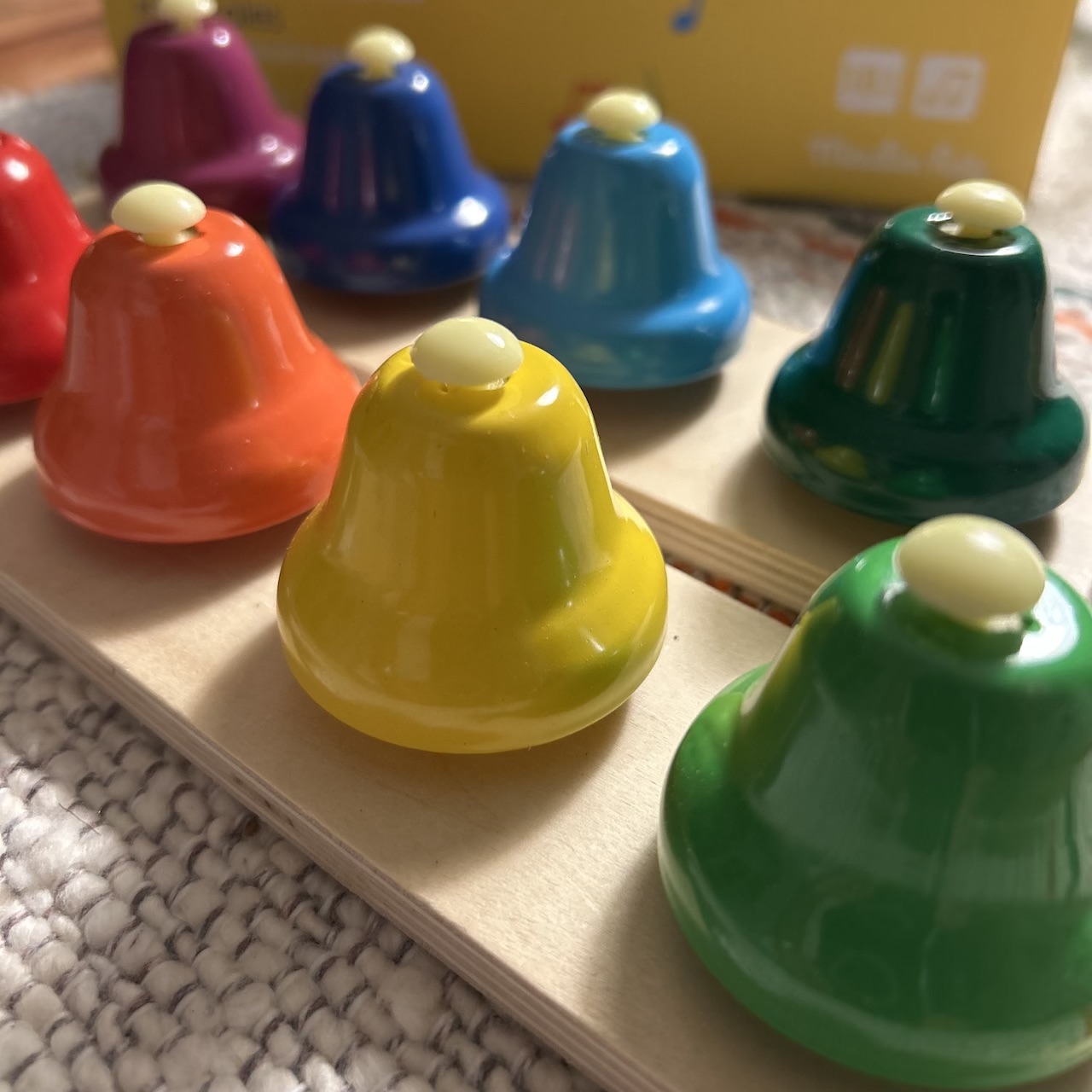Descubre la sonoridad mientras desarrollas la motricidad fina de tu peque. Dos bloques de 4 campanas cada uno y que en conjunto recrea una octava completa. Campanas Musicales de Moulin Roty están fabricadas en metal esmaltado sobre base de madera. Al no tener pendón, son perfectas para tocar con baqueta por los más peques de casa. Tu bebé de 18 meses podrá explorar la música y divertirse aproximándolo al ritmo y al movimiento.