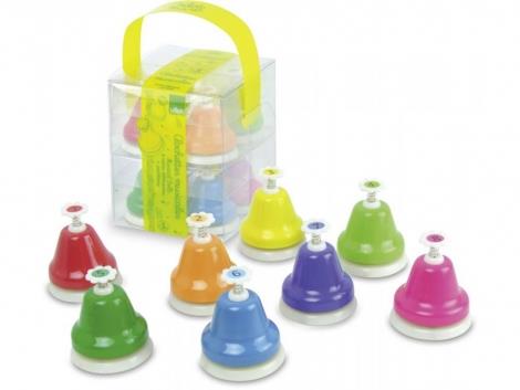 Las Campanas Musicales de Metal Goki son un instrumento infantil afinado y lleno de color que invita a explorar la música desde una vivencia sensorial y lúdica. Este set incluye 8 campanas metálicas, cada una con un tono musical distinto (de do a do) y diferenciadas por colores brillantes, lo que facilita la asociación entre sonido y color.
