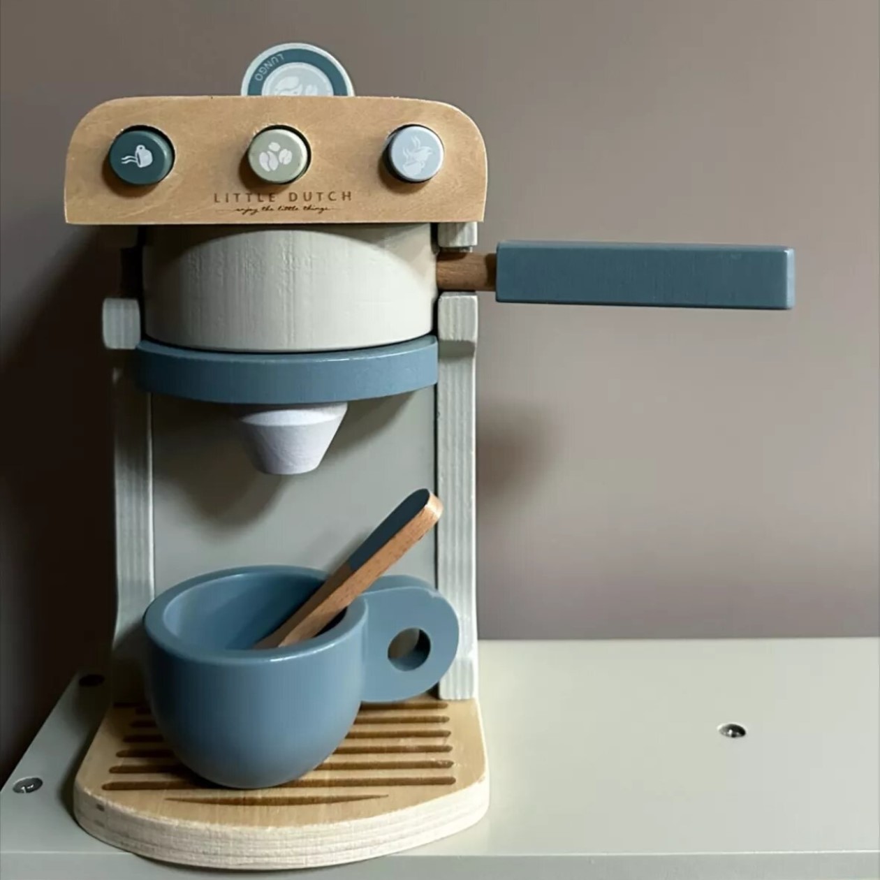 A los niños les encanta hacer cosas de adultos, como preparar una buena taza de café. La cafetera de madera Little Dutch está disponible en menta e incluye dos tazas, dos cucharas y cinco sabores de tazas de café en bonitos colores: lungo, capuchino, latte macchiato, café y espresso. El juego encaja perfectamente con la báscula de Little Dutch y es muy agradable de combinar con el juego de tostadora también de madera de Little Dutch.