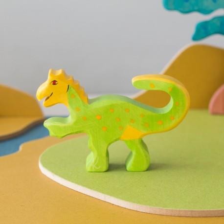 Este dinosaurio enverase y amarillos es un herbívoro muy simpático y dará muchos ratos de diversión junto a los otros dinosaurios de la colección Holztiger. Hecho y pintado a mano en madera maciza, sus suaves colores y su textura sedosa, encantarán a peques y grandes. Tintes de base acuosa son empleadas en la coloración de este dino por lo que es un juguete completamente seguro y ecológico. Los pequeños amantes de los dinosaurios adorarán este Oviraptor de madera que, por su cómoda dimensión y peso, podrán llevar consigo a cualquier lugar. Apto a partir de 3 años.
