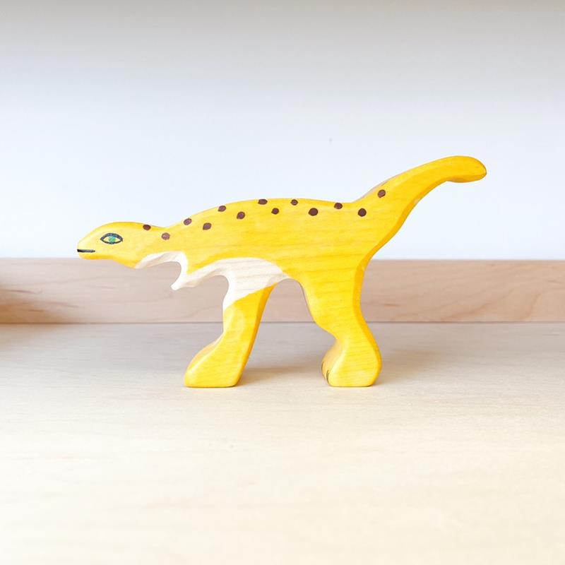 Este dinosaurio carnívoro fue de los más primitivos y ha vuelto para dar muchos ratos de diversión junto a los otros dinosaurios de la colección Holztiger. Hecho y pintado a mano en madera maciza, sus suaves colores y su textura sedosa, encantarán a peques y grandes. Tintes de base acuosa son empleadas en la coloración de este dino por lo que es un juguete completamente seguro y ecológico. Los pequeños amantes de los dinosaurios adorarán este Staurikosaurio de madera que, por su cómoda dimensión y peso, podrán llevar consigo a cualquier lugar. Apto a partir de 3 años.