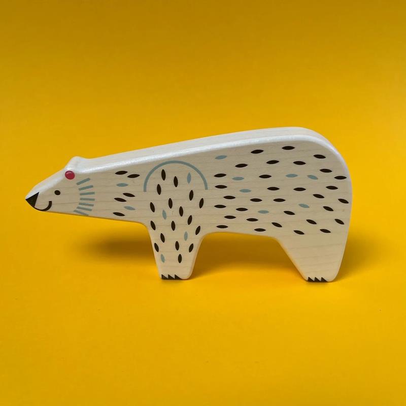 A los niños les encantará jugar con este hermoso Oso Polar, excelente para jugar en un mundo pequeño, contar historias y se puede usar con las otras figuras en juegos de apilamiento, además de proporcionar una introducción a conversaciones importantes sobre la biodiversidad. También es táctil, dando a los niños la libertad de jugar con imaginación y practicar sus habilidades motoras finas.La biodiversidad es clave para la supervivencia en nuestro planeta. BAJODIVERSITY es el nombre de esta colección de animales de madera que por culpa de la acción humana están al borde de la extinción. Los patrones inspirados en la gente recuerdan la conexión de larga data entre la vida humana y la vida animal.
