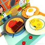 ¡Fomente los escenarios imaginarios y la narración de historias durante el juego para avivar la imaginación y el pensamiento creativo! Un divertido juego de imitación para disfrutar todos. A partir de 4 años. Incluye: 1 carta de menú, 1 bandeja plana, 3 crepas de fieltro, 1 huevo de madera, 1 queso de madera, 1 fresa de madera, 1 losa de chocolate de madera