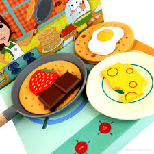 "Oh la la!" Ya las crêpes no serán sólo francesas, tus peques podrán crear deliciosas recetas y hasta jugar a tener una crêperie con estas suaves crêpes fabricadas en fieltro y los ingredientes más sutiles para acompañarlas. Incluye un menú para ofrecer a los comensales e ingredientes de madera perfectamente pintados. Y para que no tiremos nada a la basura, la caja te servirá de cocina y marquesina de tu "bistrot", pues está preciosamente serigrafiada.