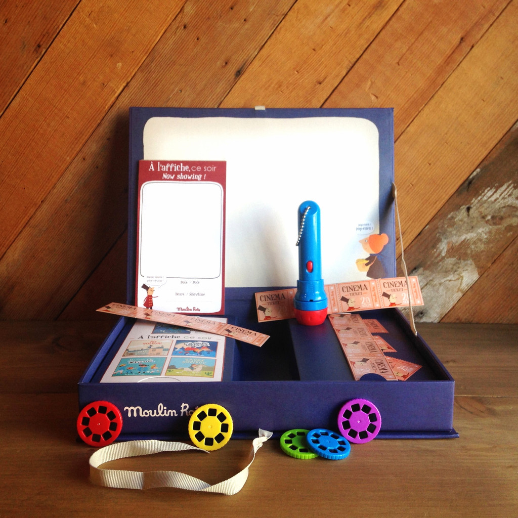 El Cinema Box de Moulin Roty es la oportunidad perfecta para demostrar tu talento a la hora de contar historias. Solamente la imaginación pondrá límites a las pequeñas grandes mentes de tus peques. Maravillosas historias podrán ser creadas. Este pequeño set de cine contiene 5 historias diferentes: "Arthur el caballero valiente", "Paren al ladrón", "Súper héroes", "Mira qué vaquero" y "Pandilla de piratas". Prepárense para vivir la magia del cine: despliega la pantalla, corran las cortinas, recoge los tíckets de entrada a cada espectador, presta atención que ya la luz está proyectada... 5, 4, 3, 2, 1.... ¡deja rodar la película!. Apto a partir de 4 años.