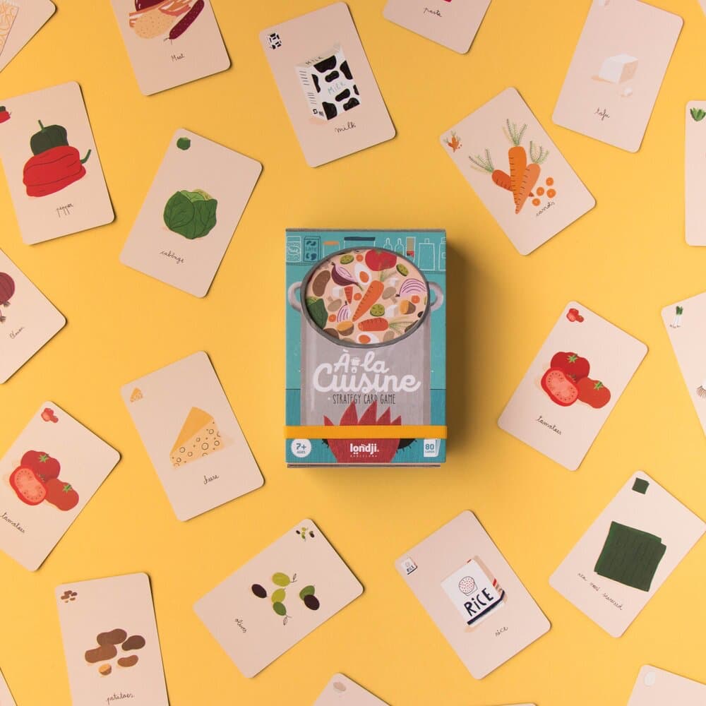 Un divertidísimo juego de cartas que estimula la concentración y la memoria, pero también la capacidad de anticiparnos y tomar decisiones estratégicamente. Y es que, como en la cocina, para ser el mejor tienes que elegir los mejores ingredientes. Juego familiar en formato viajero para 2 a 5 jugadores a partir de 7 años