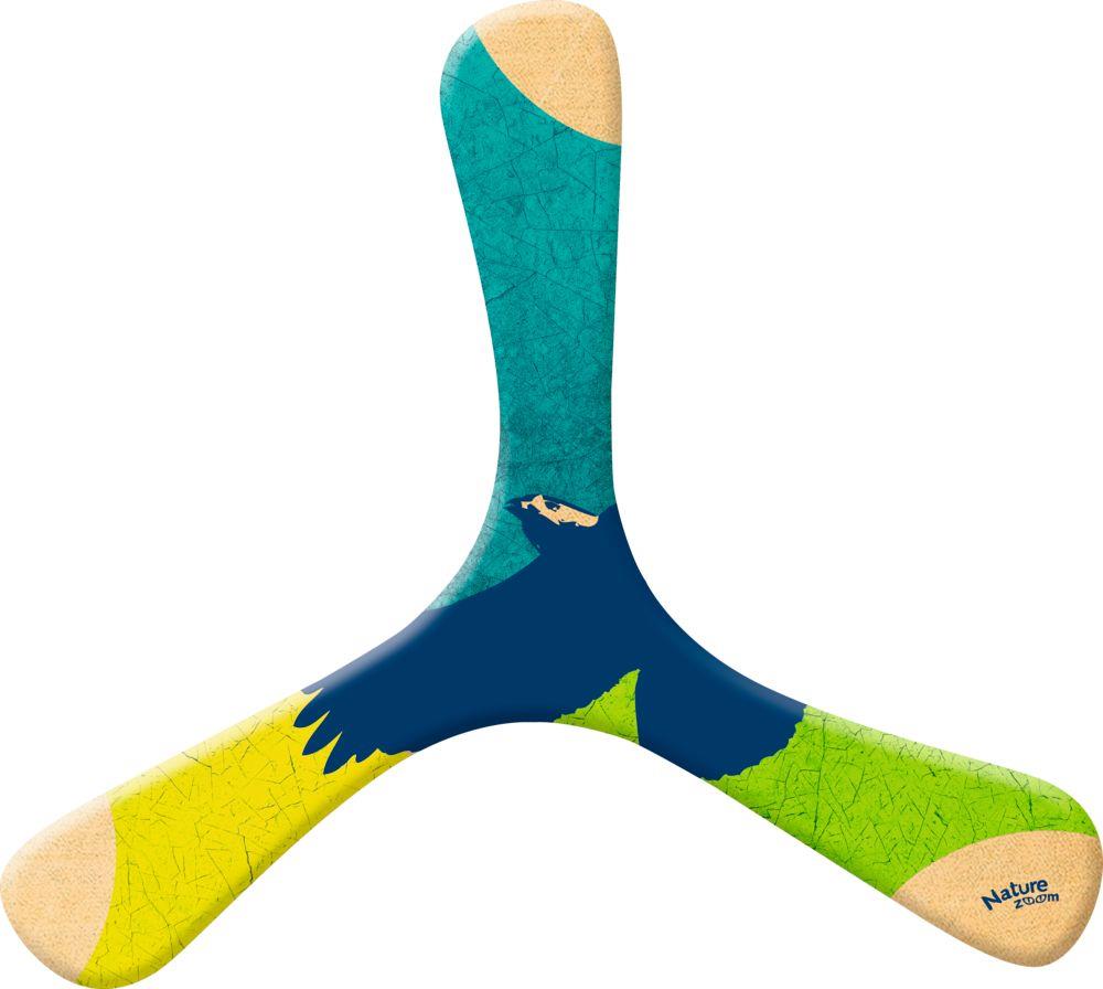 Este maravilloso Bumerán de madera es un juguete y un equipo deportivo fascinante. Lánzalo y... ¡él regresa! Es una gran sensación de logro cuando el bumerán arrojado aterriza perfectamente en tus manos nuevamente. Este boomerang Nature Zoom es de madera y viene impreso con colores alegres, apto para niñxs porque es ligero y manejable y es perfecto como un motor de arranque de tres alas. Sólo apto para diestros. A partir de 6 años.