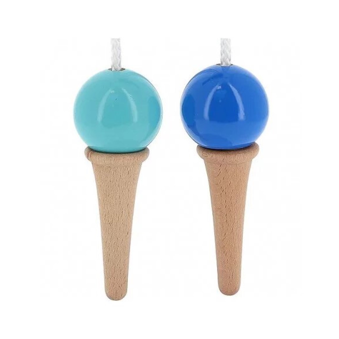 Cuerda de saltar de madera maciza lacada con forma de delicioso barquillo de helado en tonos azules. Longitud de cuerda 200 cm. Calidad de Vilac. Apto a partir de 5 años.
