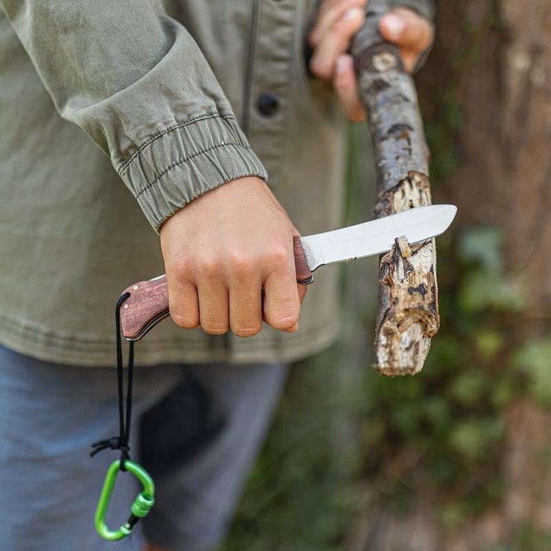 Con este Cuchillo para Tallar de la línea Expedition Nature de Moses, podrás iniciarte en el tallado de la madera. Incluye funda de nylon para su transporte y un mosquetón. Un regalo único que será una excelente iniciación en el precioso arte de la talla. Incluye cuchillo enfundable con hoja de acero inoxidable y mango de madera, funda para guardar y mosquetón para colgarlo. Apto a partir de 8 años bajo supervisión de un adulto. En nuestra web podrás encontrar el guante para tallarun complemento perfecto y necesario para un trabajo de talla seguro. Incluye dos piezas de madera para tallado fácil. Dos animales para perfilar y redondear con tu navaja, un lobo y un erizo.