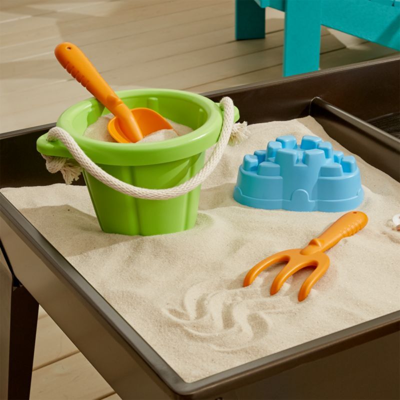 "Perfecto para el jardín, el arenero, el parque y la playa. Un set completo de cubo, pala y rastrillo fabricado en plástico reciclado libre de BpA y Phtalates. Piezas robustas para que te duren mucho tiempo con la calidad y resistencia de Green Toys."