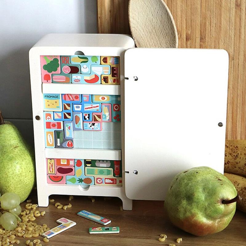 El Pack it Right Frigo de Vilac (Ref. 7640) es un juego de lógica y razonamiento espacial que reta a los niños y niñas a encajar los alimentos de madera en el frigorífico siguiendo distintos desafíos progresivos. Cada nivel propone nuevas combinaciones y formas, estimulando pensamiento lógico, resolución de problemas y coordinación ojo-mano.