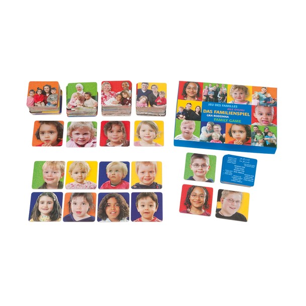 Te has preguntado alguna vez ¿Cuántos tipos de familias existen? Pues muchas, puede haber casi tantos tipos de familias como personas. Las hay inter culturales, inter raciales, con sólo una madre, a veces donde sólo está el padre. Puedes verlas también con dos madres, o dos padres, las hay que tienen muchos hijos y también las hay de pocos... Es bueno que haya tantas ¿no crees? ¿A cuál familia se parece la tuya? ¿Cuál familia te parece más curiosa y por qué? ¿Qué diferencias ves entre ellas? Tarjetas con fotografías realistas de familias y sus miembros. Hay varias modalidades posibles de juego: Juego de parejas, Juego para asociar y ordenar, Juego para conversar sobre la Familia. Apto paa 1 a 6 jugadores a partir de 3 años. Ideal para uso en el aula. En las instrucciones encontrarás también opciones de juego sencillas para niños y niñas a partir de 2 años.