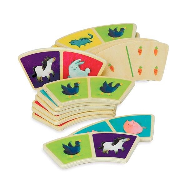 Un maravilloso dominó reversible de Animales de la granja. Por una cara diviértete aprendiendo los diferentes animales que pertenecen a la granja y asociando por imagen y color, pero, este dominó tiene aún mucho recorrido, porque cuando seas más grande, jugarás con la cara "clásica" que corresponde al dominó convencional con puntos, bueno en este caso, zanahorias. Fabricado en madera maciza, este robusto dominó será un maravilloso acompañante para el juego familiar. Apto a partir de 2 años. Calidad Vilac.