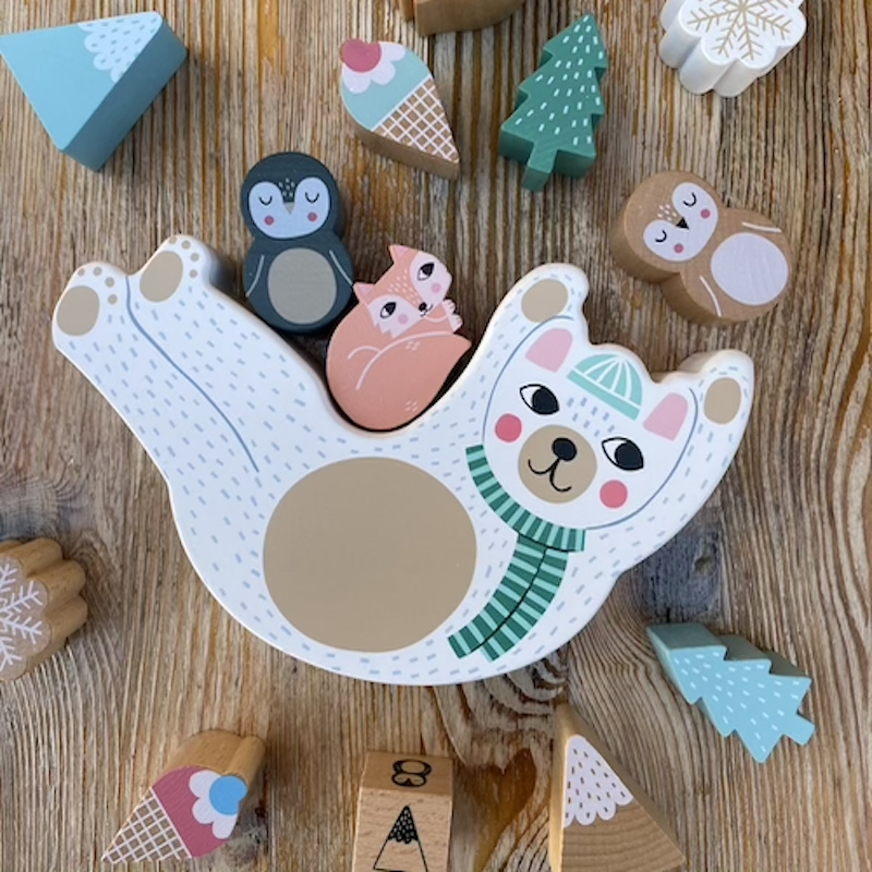 Juego de equilibrio clásico en madera pintada, Eddy Bear es un hermoso diseño de Michelle Carlslund para Vilac. Dentro de la caja encontrarás un juego realmente divertido al que puede jugar toda la familia, es importante poner un personaje por turno sin derribar a otro ¡Y cuidado! También es importante no perturbar el equilibrio del gran oso polar para que todo salga a pedir de boca... El juego está formado por el oso Eddy y sus amigos. También se incluyen algunos helados, montañas, abetos y copos de nieve. Equilibra a tus amigos y las otras piezas sobre el vientre de Eddy y observa qué tan alto puedes construir. Colores pasteles suaves y frescos que pertenecen al invierno. Michelle Carlslund es una artista y diseñadora gráfica danesa de Copenhague. Sus ilustraciones son muy conocidas y queridas tanto en Dinamarca como en el resto de Europa. Sus imágenes de animales están llenas de humor y ternura, a menudo en tonos pasteles suaves. Apto a partir de 3 años.