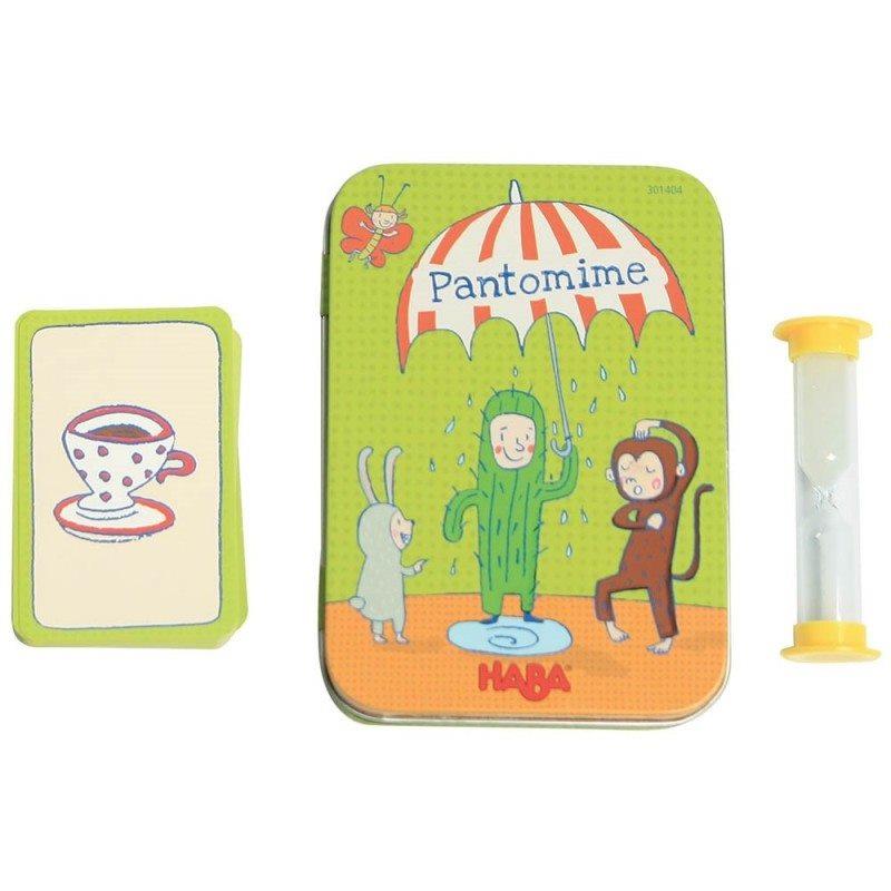 ¡Shhh! ¡Quien hable o haga ruido pierde! Porque Pantomima (mímica) significa que solo puedes "hablar" con gestos, expresiones faciales y movimientos corporales. Y eso es exactamente de lo que se trata este divertido juego de lata de HABA. Los jugadores solo describen los términos que buscan con sus cuerpos, sus manos, sus pies y sus expresiones faciales, ¡pero siempre sin palabras! Por cierto, los jugadores no tienen que saber leer, porque los términos se muestran en las tarjetas. ¿Quién puede adivinar tantos términos como sea posible representados en pantomima? Un juego de adivinanzas deliciosamente comunicativo para 4 o más jugadores, donde uno tiene que intentar quedarse quieto. Un divertido y adictivo juego para 2 a 4 jugadores a partir de 4 años. Duración aprox. de la partida: 5 - 10 minutos. ¿Qué encontrarás dentro de la lata?
