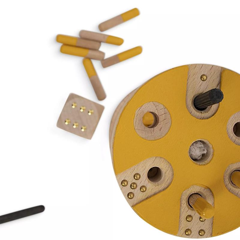 este juego existe desde hace mucho tiempo, nadie sabe el origen exacto. Sin embargo, se jugó sin la oveja negra (el pivote negro). Pruébelo y vea si es igual de divertido. Se puede sentir el número del dado y los ojos de la lata. La oveja negra se diferencia de los demás corrales por su longitud y sus nervaduras. Por eso también pueden jugar personas ciegas o con discapacidad visual. Pruebe lo bien que funciona con los ojos vendados o en la oscuridad.