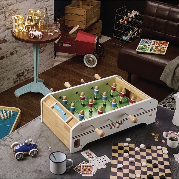 Un futbolín de madera como los de siempre pero sin comprometer el salón de casa. Eso es lo que te ofrecemos con esta genial pieza de Vilac. Un futbolín en toda regla para nostálgicos y amantes del deporte Rey. Cuidado con él, porque será adictivo. Piezas de madera, incluye bolas de madera y contador para que no os despistéis con los goles. Apto a partir de 4 años