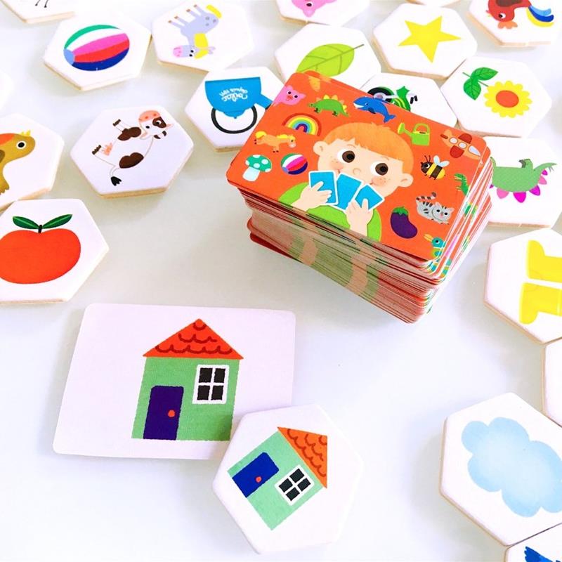 tratar de ser el primero en encontrar la ficha con la imagen correspondiente. El más rápido en encontrarla y que al final tenga la mayor cantidad de fichas, gana. Este juego admite variantes para hacer más sencillo el juego con niños y niñas más pequeñas. El formato de packaging es genial pues permite que una vez acabes de jugar, puedas guardar todo en el cubo y así no perder ninguna pieza. Este juego favorece la atención, concentración y la agilidad mental así como desarrollar el lenguaje y el aprendizaje de otros idiomas. Es perfecto para jugar 2 a 5 jugadores a partir de 3 años. Con sus 100 piezas y cartas de madera, Outékaché es un juego divertido y educativo que promete horas de diversión! Sus bellas ilustraciones encantarán a toda la familia, este juego de mesa de 2 a 5 jugadores de 5 años será perfecto para un regalo de cumpleaños. Calidad Vilac.