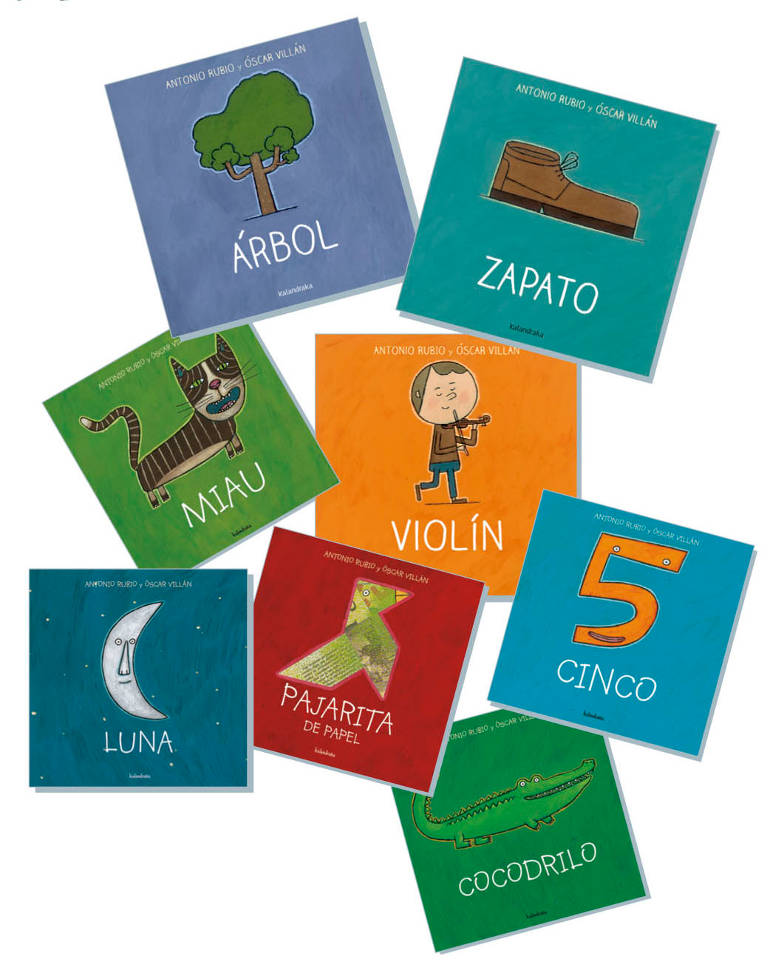 La colección completa de "De la cuna a la luna", formada por 16 cuentos (Luna, Pajarita de papel, Miau, Cocodrilo, Cinco, Veo veo, Violín, Zapato, Árbol, Limón, Frutas, Animales, Viajes, Juguetes, Bebés, Do-Re-Mi) repletos de poemas creados, según explica el propio autor, para ayudar a "educar el ojo y endulzar el oído" de los pequeños pre-lectores. Una joya editorial de Kalandraka que ningún bebé debiera perderse. 16 Poemas visuales recitables y cantables, a base de dibujos rimados y ritmados. Desde Luna y el sol hasta Do-re-mi o viajes, todos tan lejanos y próximos, tejen versos y estribillos desde el cielo hasta estas páginas de cartón. Autor / Ilustrador: Antonio Rubio / Óscar Villán.