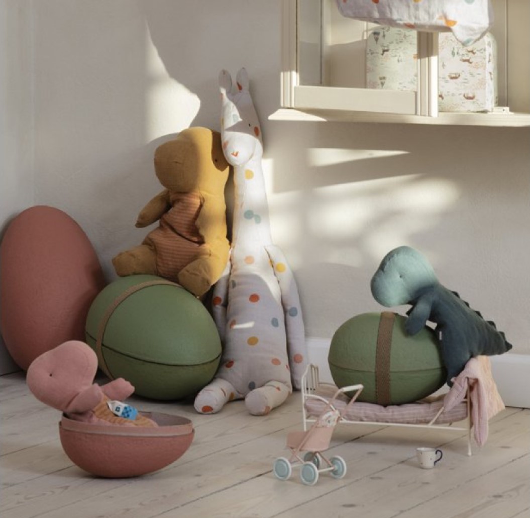 Este increíble Gantosaurus es un dinosaurio tan suave y tierno que lo único que querrás será abrazarlo. Fabricado en lino de color mostaza con su panza a rayas, este dinosaurio esta relleno de polyester reciclado. Su cuerpo es gustoso al tacto y blandito para que, seas grande o chico, no puedas resistirte a achucharlo con amor. Como buen reptil ha salido de un huevo y éste es su embalaje, un gran huevo rosa de cartón reciclado que podrás conservarlo para que tenga una cuna donde dormir. Su cresta a la espalda y sus patas delanteras cortas nos recuerdan a un T-Rex pero sus detalles delicados, su precioso tono mostaza y su panza a rayas más que miedo nos produce ternura. Con la calidad y el diseño al que Maileg nos tiene acostumbrados, este Gantosauro será la delicia de cualquier niñ@ a la hora de dormir o jugar. Apto desde el nacimiento.