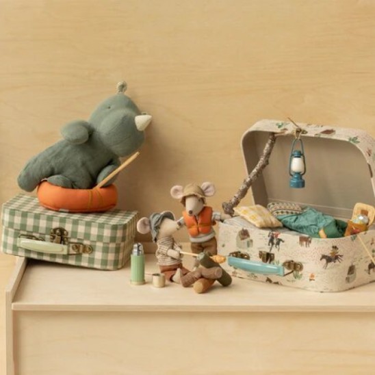 Hagamos una caminata con nuestros nuevos amigos, este ratón explorador está dispuesto a acampar en la cima y deleitarse mirando las estrellas. Big Brother Mouse excursionista pasará días en el desierto, la montaña o la playa con su saco de dormir, camiseta de rayas de suave tejido, pantalones cómodos y su sombrero especial. Incluye saco de dormir. Accesorios adicionales se compran por separado. Apto a partir de 3 años.