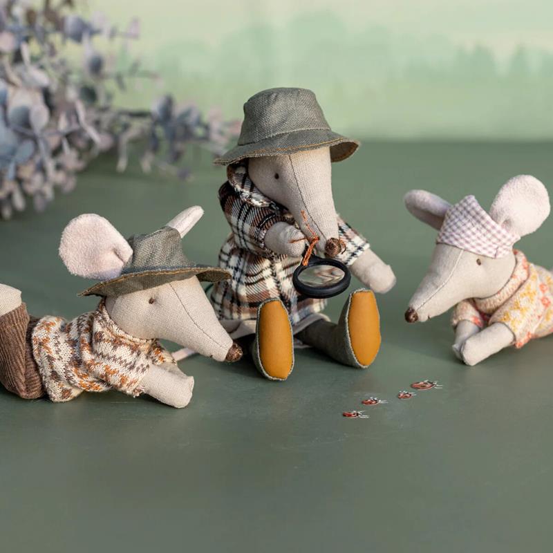 El guía perfecto para explorar la naturaleza. Su lupa y saco de dormir le permiten dormir al raso bajo las estrellas y descubrir los tesoros más pequeños del camino. El tamaño Papá de este guía lo hace perfecto para jugar con el resto de los ratoncitos de la colección de Maileg. Disfruta las aventuras junto a este ratón guía de vida silvestre listo para un viaje de senderismo. El guía está vestido para caminar y trae un saco de dormir y una lupa para explorar la naturaleza. Modelo de tamaño papá/mamá con imanes en las manos. (La tienda NO está incluida, se incluye una lupa y un saco de dormir).
