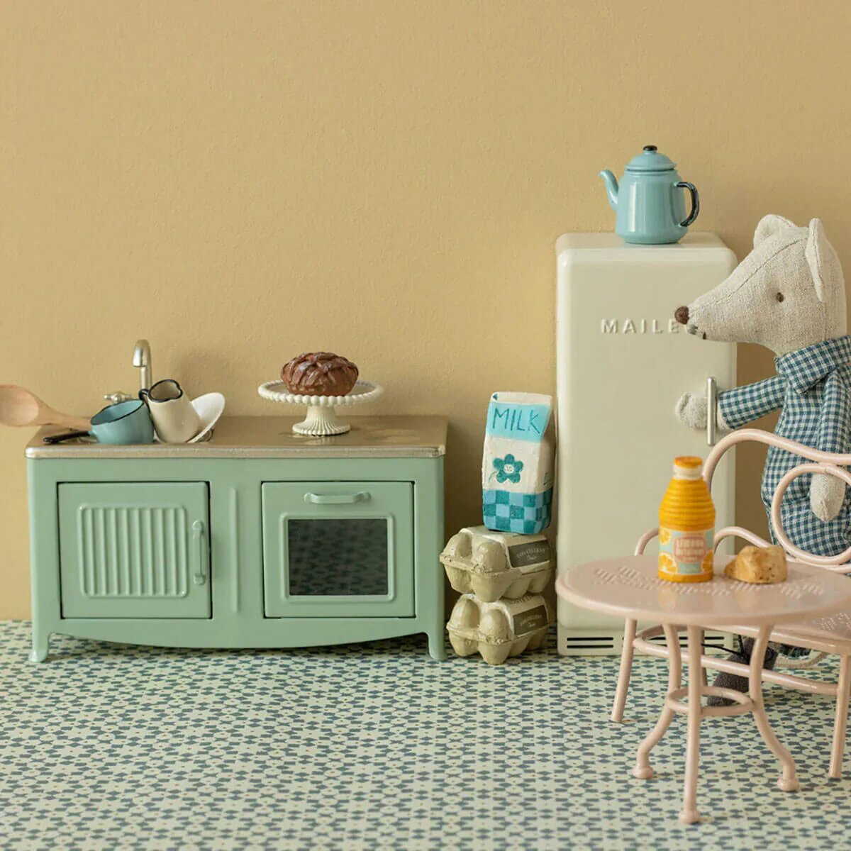 "La Cocina Mint es el complemento obligatorio si ya tienes algún ratoncito en casa. Es la pieza que convierte un "muñeco" en un "hogar". Recomendamos combinarla con el set de utensilios de cocina de Maileg para que la experiencia sea completa. ¡Y un consejo de amigo: vigila que la Hermana Mayor no se coma todos los bollitos de una vez! ¿Olemos a pan recién hecho? Dale a tus ratones el hogar que se merecen con esta joya vintage. ¡Equipar mi cocina Maileg ahora! "
