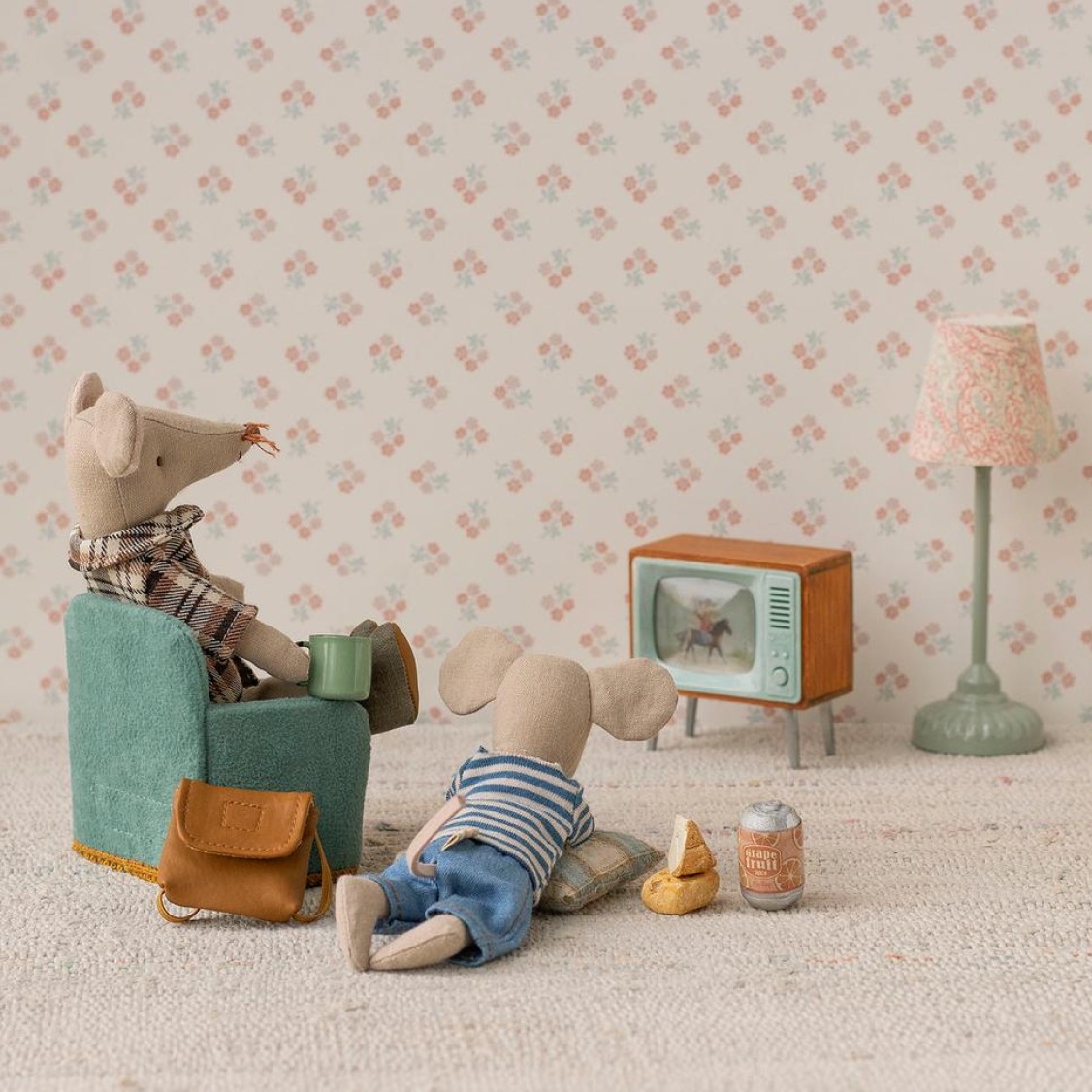 "La Televisión Vintage es el complemento que le falta a tu salón Maileg para que se sienta como un verdadero hogar. Es ideal para combinarla con el sofá de metal o las butacas de la marca. Recomendamos sugerirle al niño que dibuje sus propias "escenas" en papel para ponerlas sobre la pantalla; ¡así tendrá una programación diferente cada día! ¡Silencio en la sala, empieza la película! Haz que el salón de tus ratones sea el más elegante del vecindario con esta joya de madera. ¡Comprar Televisión Maileg ahora!"
