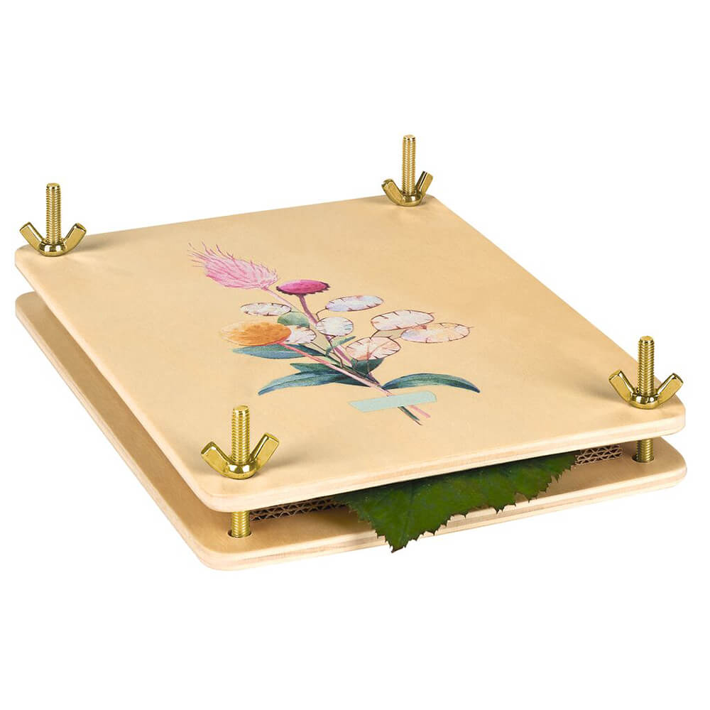 Un paseo por el bosque o el jardín, dan para mucho. Porque esa vieja tradición de poner una hoja bonita dentro de un libro y rescatarla meses después, puedes hacerlo con esta prensadora para crear tu propio cuaderno-herbario. Recicla las hojas caídas y las flores, preserva la belleza de la naturaleza desecándolas con este kit de prensadora. Realiza bonitas tarjetas, cajas o decora tus cuadernos con motivos florales y naturales prensando el material en tu propia casa, fácil, bonito y delicado. Un regalo ideal para manitas curiosas y con un sentido amor por lo natural y creativo. La base de la prensadora mide aprox. 14,8 x 21 cm. Coge flores en el campo, las hojas del jardín que más te gusten, prénsalas espera que sequen y ya! Apto a partir de 6 años.