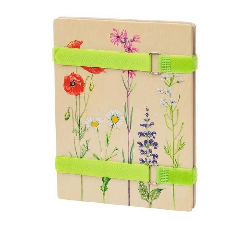 Un paseo por el bosque o el jardín, dan para mucho. Porque esa vieja tradición de poner una hoja bonita dentro de un libro y rescatarla meses después, puedes hacerlo con esta prensadora para crear tu propio cuaderno-herbario. Recicla las hojas caídas y las flores, preserva la belleza de la naturaleza desecándolas con este kit de prensadora. Realiza bonitas tarjetas, cajas o decora tus cuadernos con motivos florales y naturales prensando el material en tu propia casa, fácil, bonito y delicado. Cuando estés explorando el campo o dando un paseo familiar por el bosque, encontrarás toneladas de hermosas flores y hojas para coleccionar. De regreso a casa, la Expedición Nature Leaf de tu Prensadora de Flores te ayudará a preservar la belleza de esos hallazgos. El práctico cierre de velcro facilita la prensión. Se pueden crear y grabar grandes obras de arte con las láminas de papel de impresión solar que vienen incluidas, lo que a su vez te enseñará cómo es el proceso del Cianotipo y cómo reacciona el papel ante la luz solar. Con las instrucciones comprensibles para los procesos de prensado e impresión solar, incluso los más peques investigadorxs podrán guardar sus tesoros. Un regalo ideal para manitas curiosas y con un sentido amor por lo natural y creativo. La base de la prensadora mide aprox. 14,8 x 21 cm. Coge flores en el campo, las hojas del jardín que más te gusten, prénsalas espera que sequen y ya! Apto a partir de 7 años. ¿Qué encontrarás dentro de la caja?